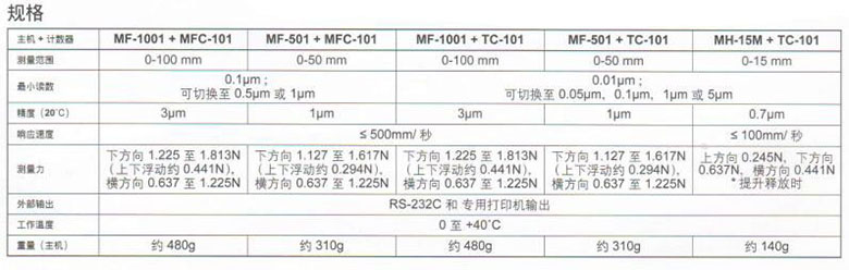 最小读数为001um;20℃时精度为0.7um;可以多种精度进行测量。 TC-101计数器标准配备Rsˉ232C输出和打印机输出功能。